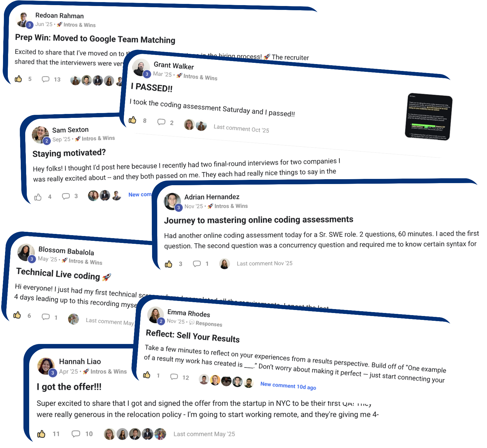 Get access to the step-by-step process and join our Exclusive Community of Software Engineers building towards ultimate career control — i.e. the ability to land consistent interviews an offers regardless of what the job market is doing.